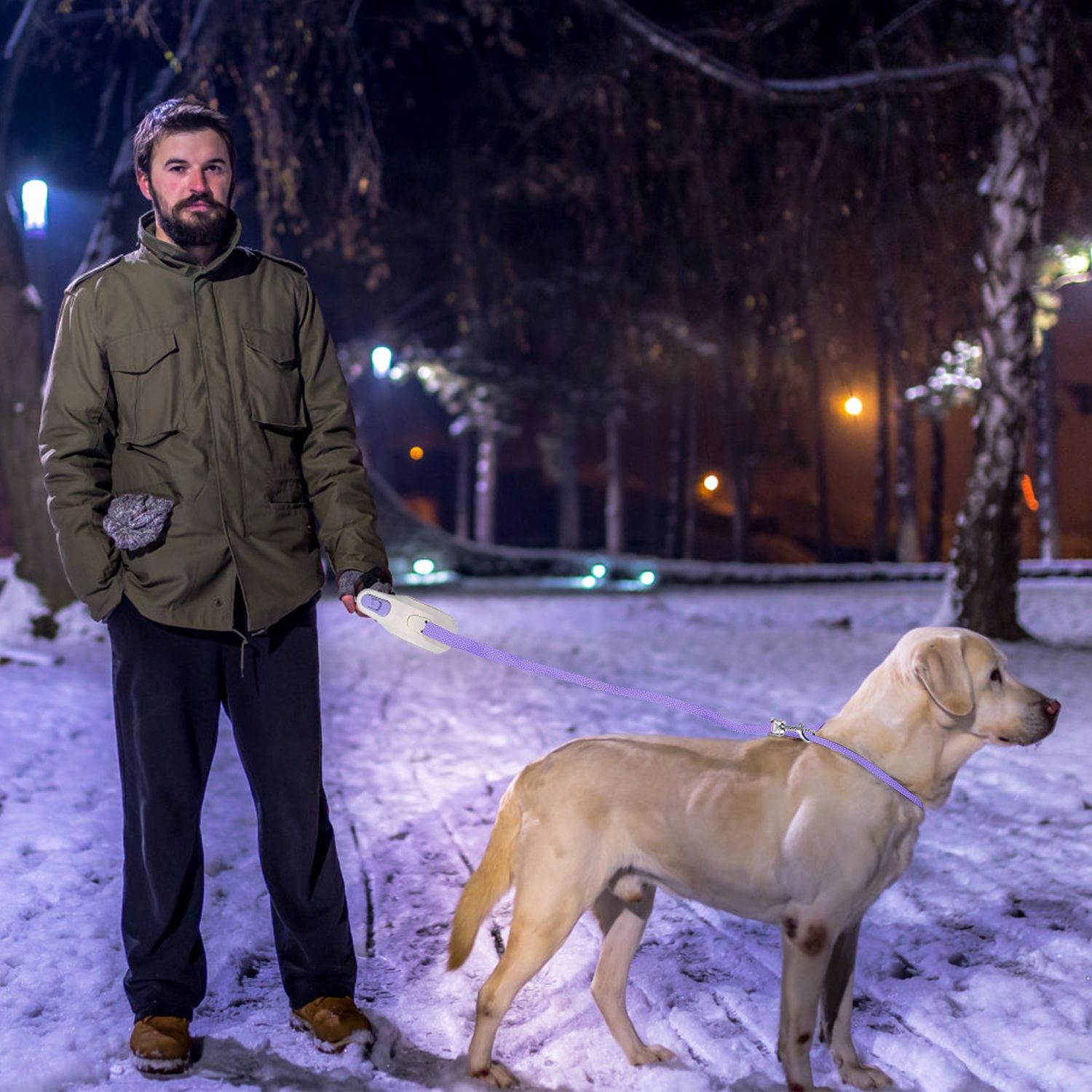 1.Built in visible spotlight, our retractable walking leash clears your vision within 5m/16.4ft in the dark