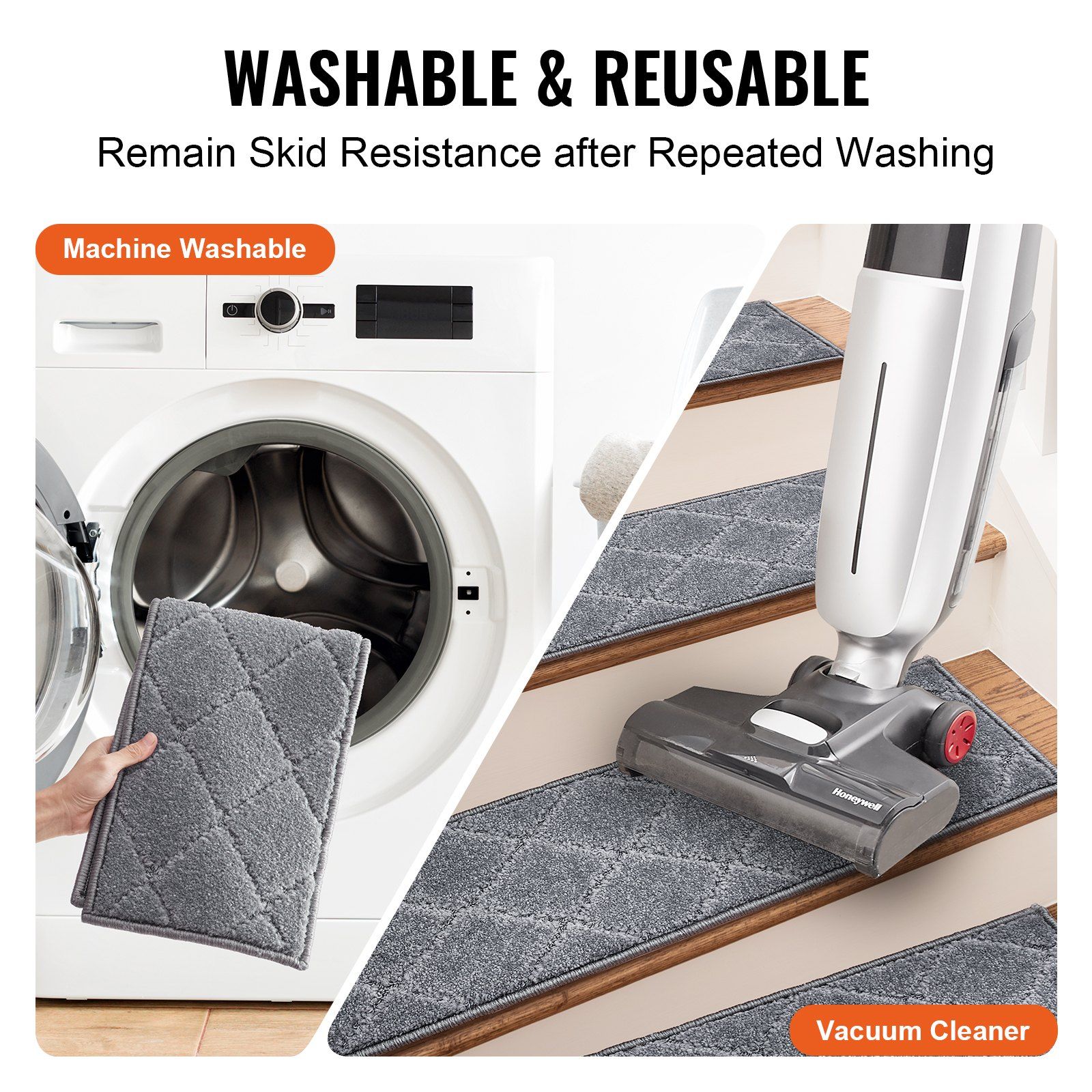 2.Washable & Reusable: Our non-slip stairs carpets are easy to clean. You can use a vacuum to remove dust, scraps, and pet hair. They can also be tossed into the washing machine, and they will maintain their shape and slip resistance even after repeated washings. Plus, our edge-locking technology prevents any fibers from falling off.